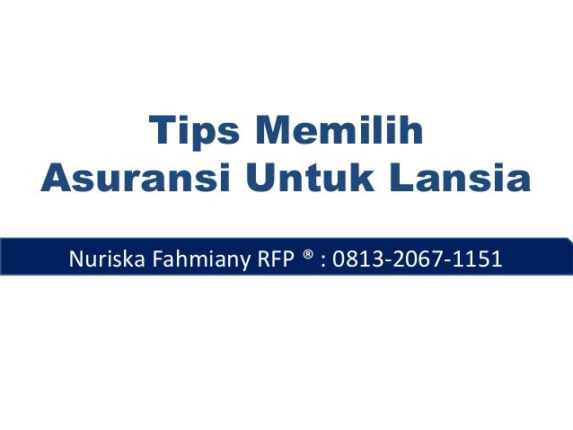 Asuransi kesehatan juga bisa dimanfaatkan untuk menjaga agar lansia sehat, mandiri, aktif, dan produktif secara sosial dan ekonomi. Yang Harus Dilakukan Saat Memilih Asuransi Kesehatan untuk Orang Tua. Di Indonesia, umumnya batasan usia maksimal untuk mendaftar di asuransi kesehatan adalah 65 tahun. Sebelum memutuskan untuk memilih salah satu ...
