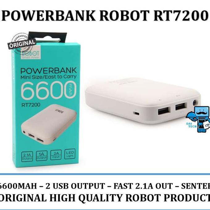 Rp125.000. Harga Power Bank Powerbank Robot RT7200 6600 mAh 2 USB Ports 2A PB White. Rp125.000. Harga Power Bank Robot RT 7200 / 7100 6600 mAh (Original Resmi) Rp142.700. Harga Powerbank Vivan Robot RT6800 6600mAh 6600 mAh Real Capacity Power Bank.