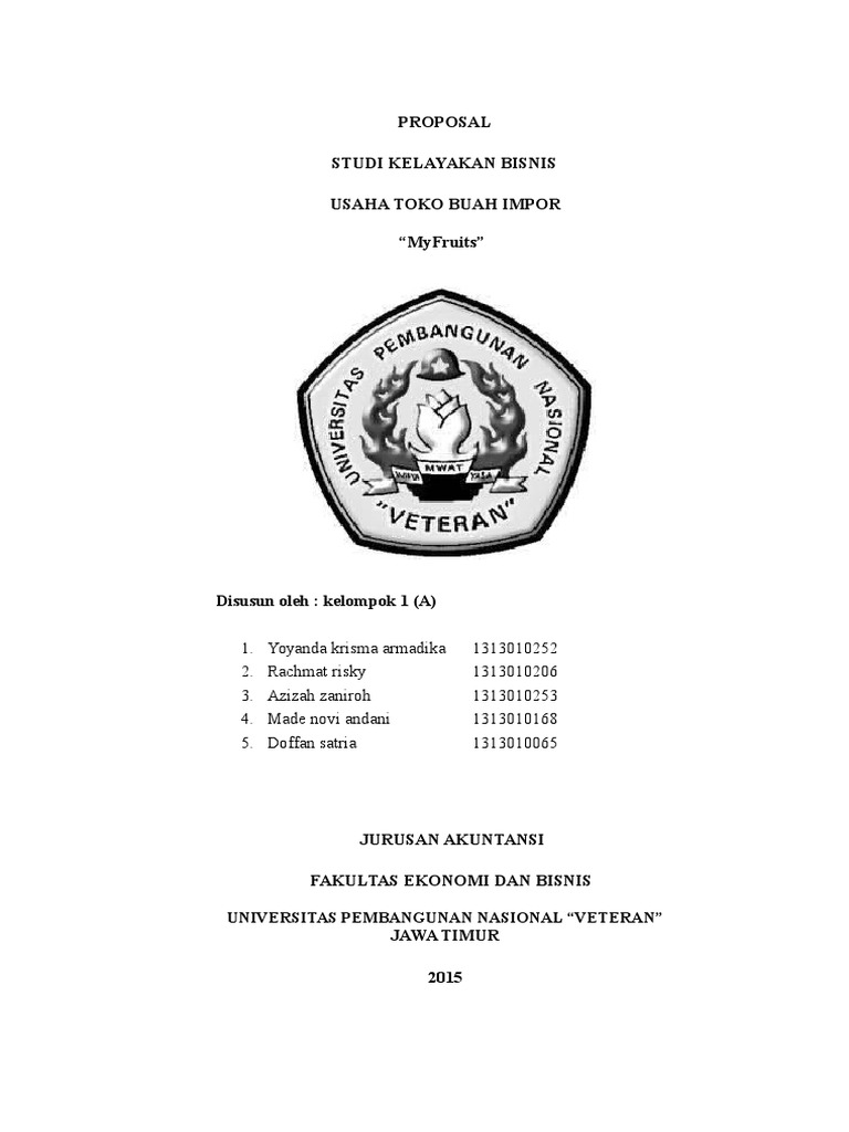 Pertama-Tama Saya Ingin Panjatkan Puji Dan Syukur Kepada ALLAH SWT karena berkat dan rahmatnya penulis dapat menyelesaikan tugas studi kelayakan bisnis . Serta salawat dan salam kita Haturkan Kepada Junjungan Nabi besar kita yaitu Nabi Muhammad S.A.W karena beliau telah membawa kita dari jaman Jahiliyyah menuju jaman yang terang bagi umat manusia. Mar 05, 2017 · Contoh Laporan Studi Kelayakan Bisnis Mahasiswa 1. LAPORAN STUDI KELAYAKAN BISNIS AKSESORIS DAN KADO “MELATI CANTIK” Disusun oleh: PROPANINGTYAS FEBRY WINDARDINI NIM. 10115002 JURUSAN AKUNTANSI FAKULTAS EKONOMI UNIVERSITAS GAJAYANA MALANG 2012 2. A.