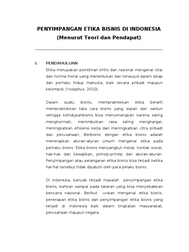 by A Mundir · 2020 — “Etika Bisnis Bagi Pelaku Bisnis: Cara Cerdas Dalam Memahami Konsep Dan Faktor-Faktor Etika Bisnis Dengan Beberapa Contoh Praktis.