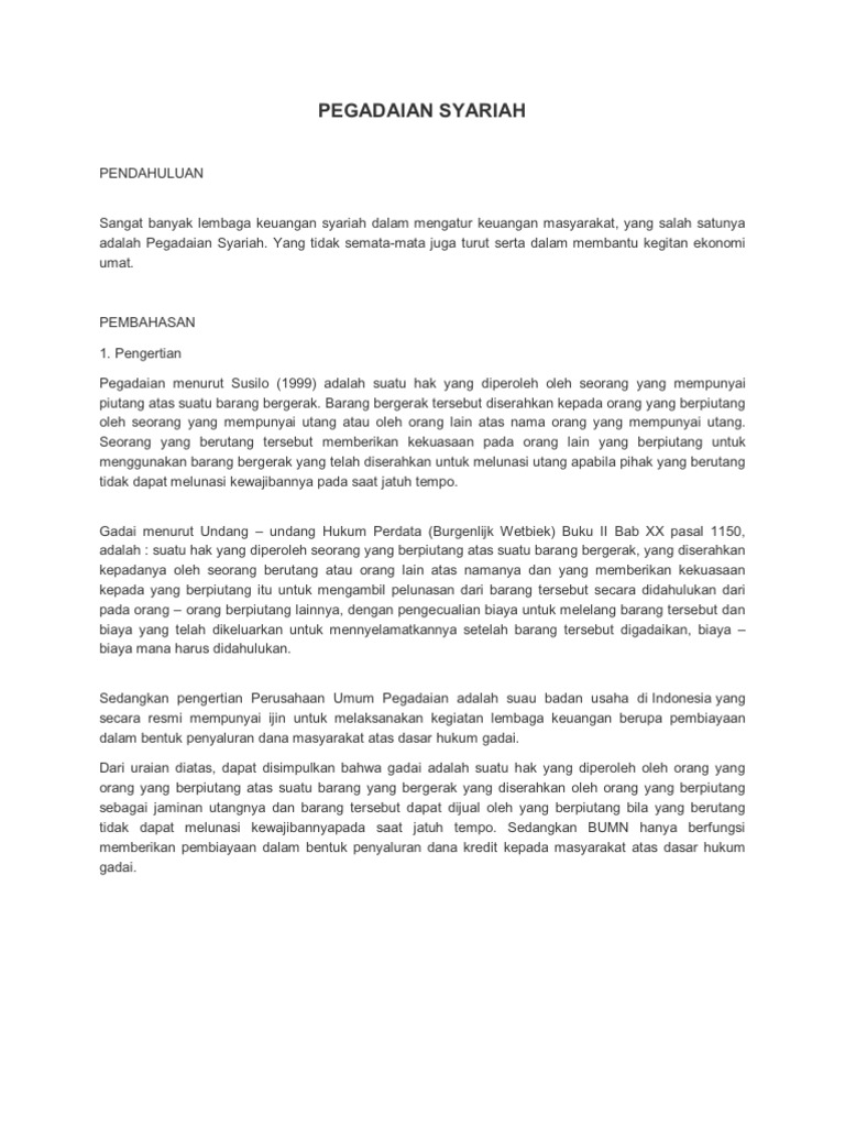 Gadai Syariah adalah sistem menjamin utang dengan barang yang dimiliki yang mana memungkinkan untuk dapat dibayar dengan uang atau hasil penjualannya Perbedaan Gadai Syariah dan Gadai Konvensional Produk gadai yang selama ini dikenal dan sering dilakukan adalah gadai emas. Lalu, apa bedanya gadai syariah dan gadai konvensional?