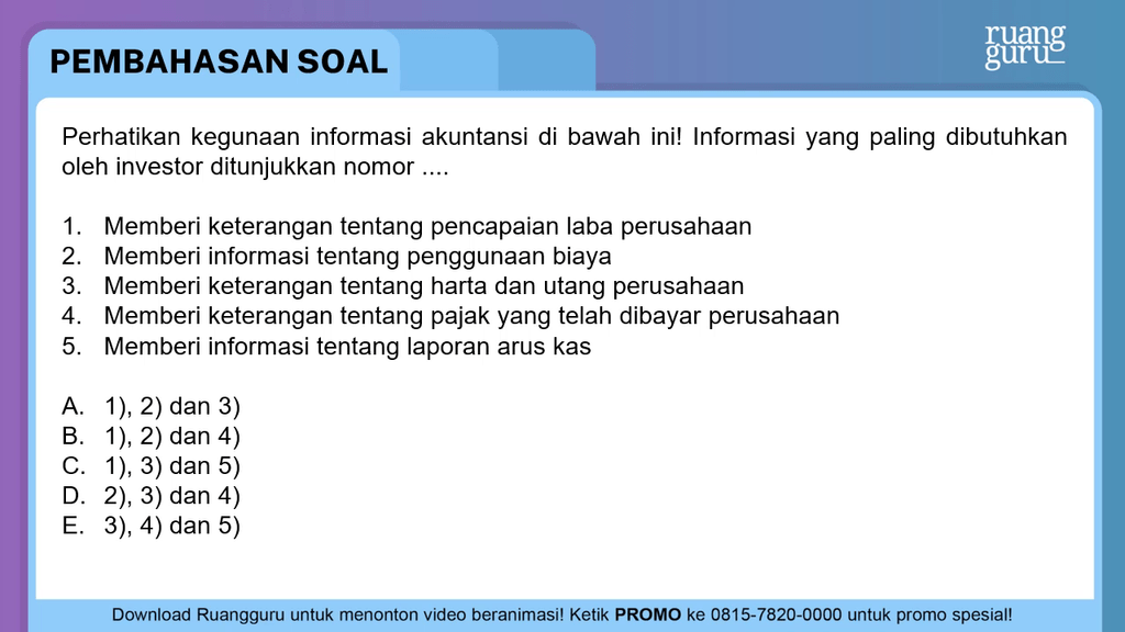 Soal-soal berikut sebagaimana telah disebutkan dalam judul di atas, terdiri dari 50 Soal Pilihan Ganda. Agar tidak terlalu panjang, maka soal Ekonomi Kelas XII Bab 1 Akuntansi Sebagai Sistem Informasi ini Sekolahmuonline bagi menjadi dua bagian (Part 1 dan Part 2).