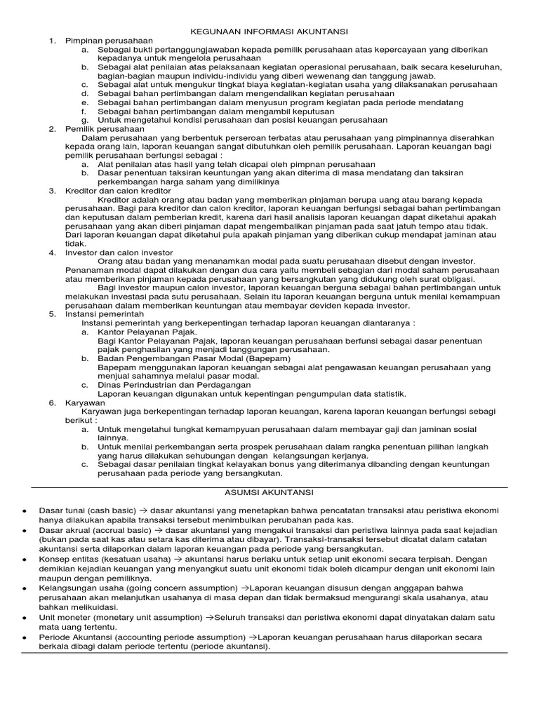 Jun 26, 2017 — Informasi ini menyediakan data mentah bagi informasi akuntansi keuangan dan ... Berikut adalah kegunaan informasi akuntansi untuk pemimpin ...
