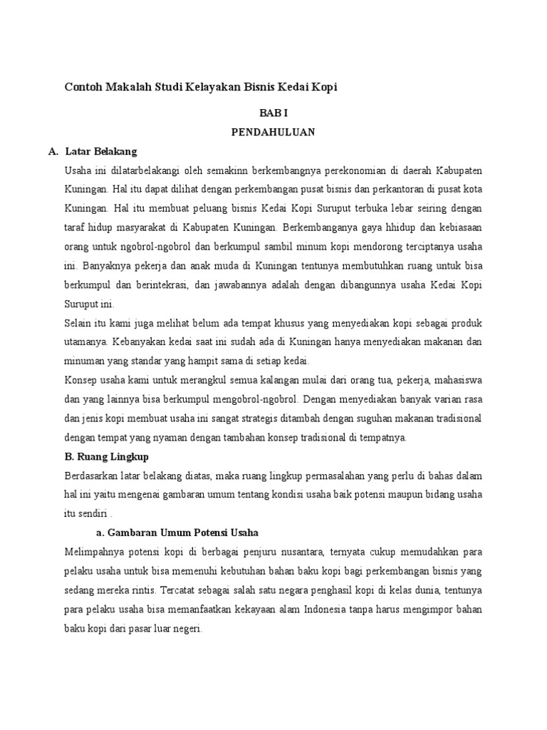 Proposal studi kelayakan bisnis cafe mlscribd. Studi kelayakan bisnis kedai kopi bang ben 1. Makalah studi kelayakan bisnis restaurant studi kelayakan bisnis merupakan langkah awal dan wajib dilakukan setiap orang yang akan memulai sebuah bisnis pengertian. Jurusan akuntansi disusun oleh contoh makalah pelaksanaan pembangunan gudang.
