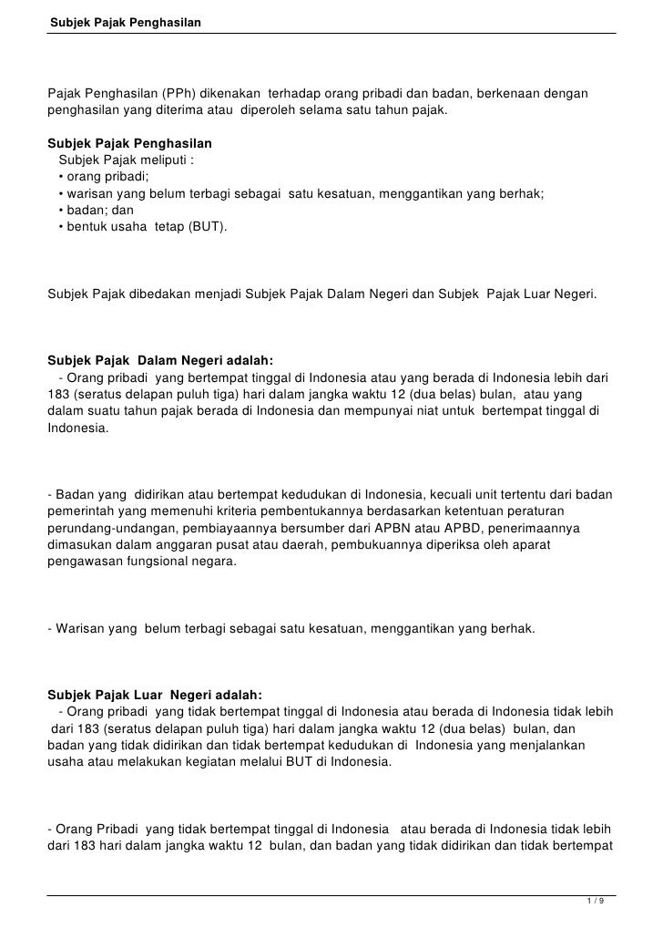 PPh atas Gaji 4.545.000 PPh atas Pesangon 25.000.000 29.545.000 * Tanggungan atas anak ikut suami karena suami juga bekerja mendapatkan penghasilan di Indonesia. ... Asas ini diapllikasikan langsung pada penerapan tarif progresif pada pajak PPh orang pribadi . ... Biaya bunga pinjaman telah sesuai dengan ketentuan perpajakan h. PERSETUJUAN ANTARA PEMERINTAH REPUBLIK INDONESIA DAN PEMERINTAH HONG KONG WILAYAH ADMINISTRATIF KHUSUS REPUBLIK RAKYAT CHINA UNTUK PENGHINDARAN PENGENAAN ... Jul 21, 2021 · Penghasilan yang dibayar/ terutang kepada badan usaha atas jasa keuangan penyalur pinjaman dan/ atau pembiayaan yang dikecualikan dari pemotongan PPh Pasal 23 adalah penghasilan berupa bunga atau imbalan lain yang diberikan atas penyaluran pinjaman dan/atau pemberian pinjaman (termasuk pembiayaan berbasis syariah) (Pasal 1 ayat (2) PMK-251/PMK ... 17 Jul 2016 — Debt Financing Equity Financing Back-to-back Pinjaman Pemegang Shm atau pinjaman bank $ 1 juta 0 Laba sebelum bunga & pajak $ 150.000 ...