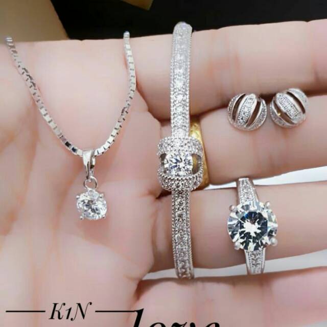 Jual Perhiasan Emas Putih Satu Set Lengkap Kalung Liontin Gelang Giwang Anting Cincin Fashion White Gold Wanita Aksesoris New Model Di Lapak Paris Rich Jwl Bukalapak