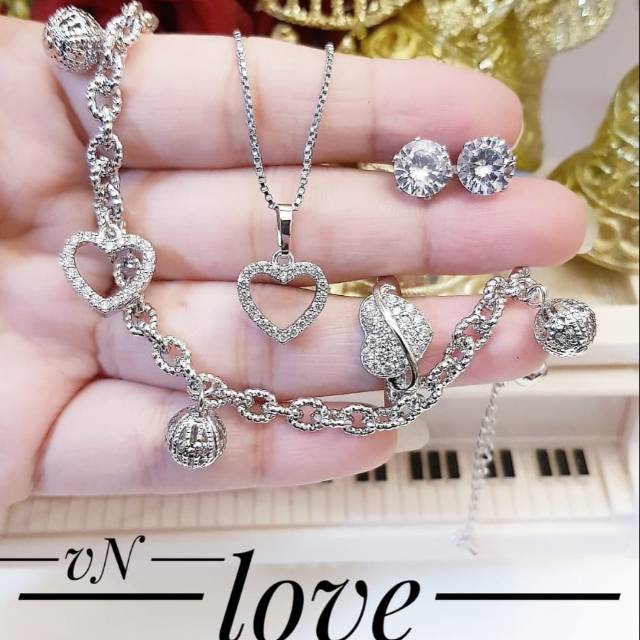 Jual Perhiasan Emas Putih Satu Set Lengkap Kalung Gelang Anting Cincin Model Eropa Asli Di Lapak Paris Rich Jwl Bukalapak