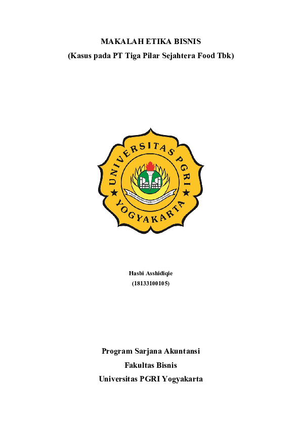 MAKALAH Etika bisnis BAB I PENDAHULUAN A. Latar Balakang Istilah etika memiliki banyak makna berbeda. Ada yang menyebutkan bahwa etika adalah semacam penelaahan, baik aktivitas penelaahan maupun hasil penelaahan itu sendiri. Pendapat lain menyebutkan bahwa etika adalah kajian moralitas. by YO SARI · 2016 — Secara sederhana etika bisnis dapat diartikan sebagai suatu aturan main yang tidak mengikat karena bukan hukum. Tetapi harus dapat diingat dalam.11 pages MAKALAH TANGGUNG JAWAB DAN ETIKA BISNIS PERUSAHAAN KASUS SUAP KEPABEANAN BEA CUKAI ... Metode Penulisan Dalam makalah Etika Bisnis ini, penulis menggunakan ... Dan kami juga berterima kasih kepa da Dosen mata kuliah ETIKA BISNIS, Bapak Said M. Rahimin, S.Ag.,MM yang telah memberikan tugas makalah ini kepada kami. Kami sangat berharap makalah ini dapat berguna dalam rangka menambah wawasan serta pengetahuan kita tentang mengenai hak-hak seorang pekerja dalam etika berbisnis .
