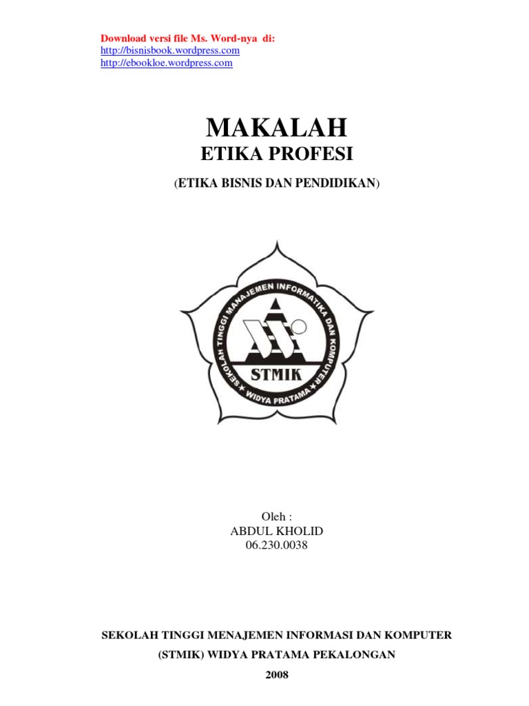 Makalah etika dalam bisnis. MAKALAH KWU ETIKA BISNIS DAN KEWIRAUSAHAAN Kelompok : 6 Tri akbar V ... dan perlu mendapat perhatian dalam dunia bisnis ini adalah norma dan etika bisnis. by MIS Hamid · 2021 — Etika bisnis sebagai seperangkat nilai tentang baik, buruk, dan salah dalam dunia bisnis berdasarkan pada prinsip-prinsip moralitas. Dalam arti lain etika ...6 pages Semua aktivitas bisnis dapat dianggap sebagai profesi. Karena dalam setiap bisnis dituntut untuk selalu bersikap professional dan beretika. Dalam setiap aktivitas yang dilakukan oleh manusia, selalu diikuti oleh norma-norma dan etika yang harus dipenuhi supaya tidak mengganggu dan merugikan orang lain. Karena bisnis tidak dapat bertahan hidup tanpa etika, maka kepentingan bisnis yang paling utama adalah mempromosikan prilaku etika kepada anggotanya dan juga masyarakat luas. Etika hendaknya diterapkan dalam bisnis dengan menunjukan bahwa etika konsisten dengan tujuan bisnis, khususnya dalam mencari keuntungan.