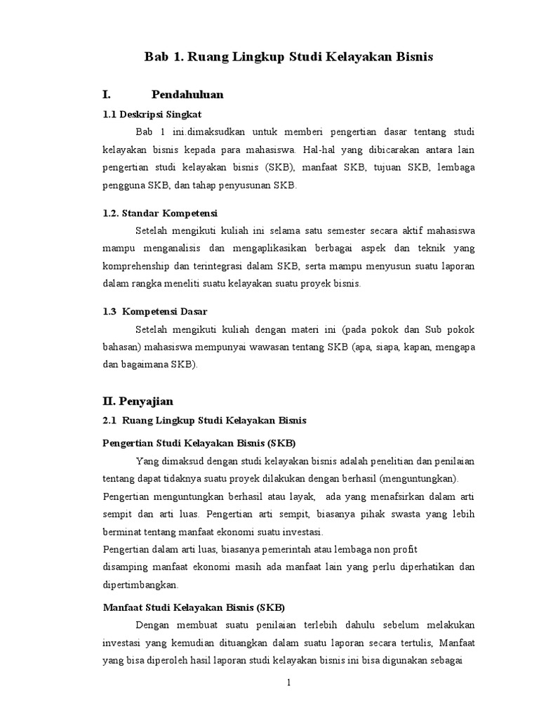 Materi studi kelayakan bisnis | MATERI KULIAH SKB - Juli 02, 2013. Materi kuliah skb. Studi kelayakan bisnis. • Pengertian: Analisa tentang layak atau tidaknya suatu proyek atau bisnis Semakin besar bisnis/ proyek tsb., maka semakin rumit dan lengkap analisisnya. Analisis ini ada yang melengkapi dengan analisa social cost and social... Materi Perkuliahan: Studi Kelayakan Bisnis ~ IDEOLICIOUS Berikut adalah materi-materi perkuliahan Studi Kelayakan Bisnis, bagi anda-anda yang ingin menjadi analis manajemen, lengkap dengan framework yang membantu anda untuk menentukan apakah sebuah bisnis/proyek/usaha layak untuk dijalankan atau tidak. Makalah Studi Kelayakan Bisnis - MAKALAH STUDI... - StuDocu studi kelayakan bisnis. UniversityUniversitas Islam Negeri Syarif Hidayatullah Jakarta. Materi Data Warehouse, Data Mining dan Pendekatan Manajemen Berbasis Data. Forum Audit. Dengan mengenali aspek tersebut dalam melakukan studi kelayakan bisnis dapat menganalisa bisnis yang...