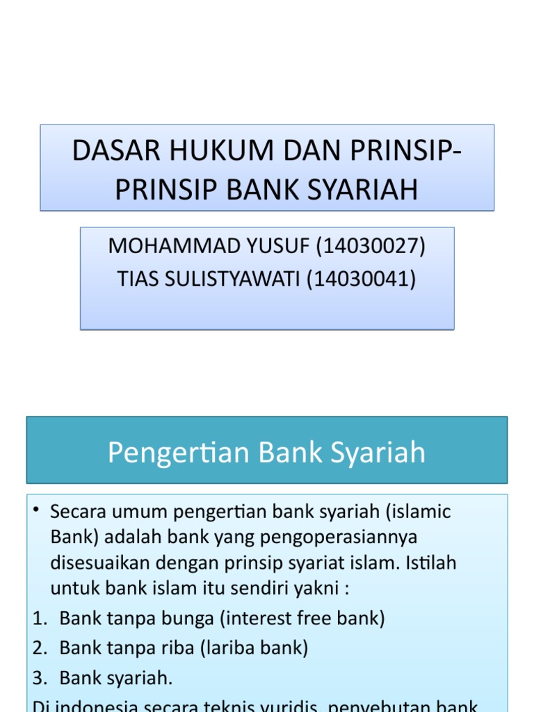 (DOC) Dasar Hukum Perbankan Syariah di Indonesia | Iwan ... Dasar Hukum Perbankan Syariah di Indonesia Konsep negara hukum yang tercantum dalam konstitusi Indonesia memberikan dampak terhadap subjek hukum baik warga negara atau badan hukum, sehingga setiap perbuatan yang dilakukan oleh subyek hukum wajib memiliki dasar hukum, mengikuti hukum yang berlaku, dan tidak melanggar peraturan- peraturan yang ...