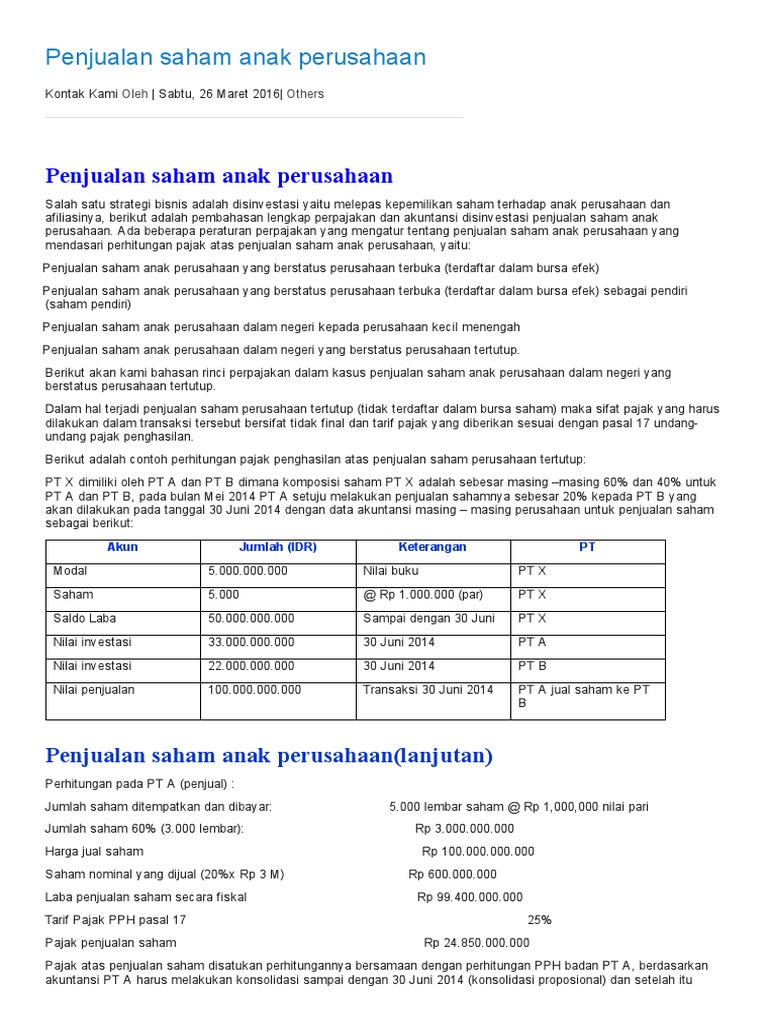 1 Beban perpajakan penjualan Saham perusahaannya tertutup 2 Studi Kasus pajak penjualan Saham masyarakat tutup pintu 2.1 Asumsi: 2.2 Pembahasan: Beban pajak penjualan Saham masyarakat Tertutup. di dalam bab perusahaan yangi sahamnmemiliki noel terberpesta dalam bursa efek, maka hanya ada satu aspek pajak penghasilan (PPh) yangi akan dibebankan.