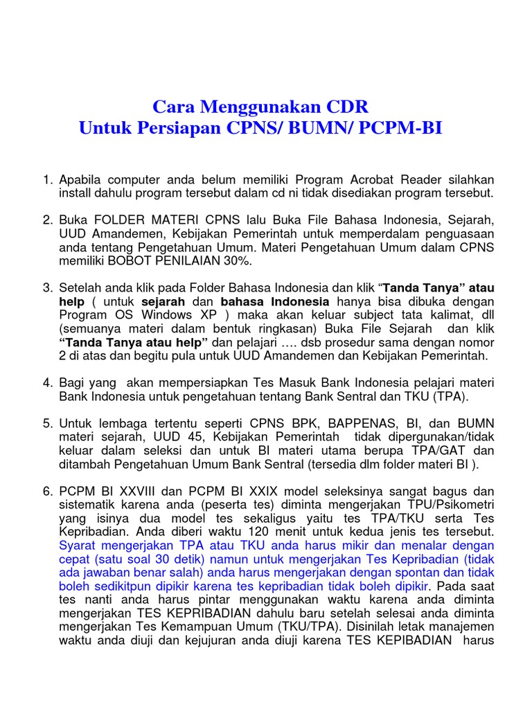 Tes PCPM Bank Indonesia ~ capcaibakar Test pengetahuan umumnya soal perbankan, ekonomi, dan Bank Indonesia. Jadi baca web BI, baca buku ekonomi, dan baca buku perbankan. Yo weis gini aja. Sampai ketemu di PCPM XXX ya. Tes Kemampuan Umum PCPM XXXI Bank Indonesia - Si Meongijo Tahapan tes saya waktu PCPM XXX belum tentu sama persis dengan PCPM XXXI ini. Tapi memang ada pola generalnya yang biasa dipakai. Currently part of Bank Indonesia XBRL team member, specialized in data point model and taxonomy creation. Also has interest on marketing strategies... Tentang PCPM Bank Indonesia - Catatan Pengingatku Apakah itu PCPM? PCPM adalah Pendidikan Calon Pegawai Muda, merupakan salah satu jalur penerimaan pegawai yang dipersiapkan untuk menjadi pimpinan di Bank Indonesia. Metode apa saja yang digunakan dalam rekrutmen PCPM 35 tahun 2020? Program PCPM Bank Indonesia Halaman 1 - Kompasiana.com Kali ini, aku share pengalaman sewaktu ikut tes PCPM BI dulu, untuk yang Kementerian Keuangan, aku tulis di Tanggal 31 Juli 2013, aku nekat ikutan daftar untuk seleksi Pendidikan Calon Pegawai Muda Bank Indonesia, atau yang biasa disebut PCPM BI.