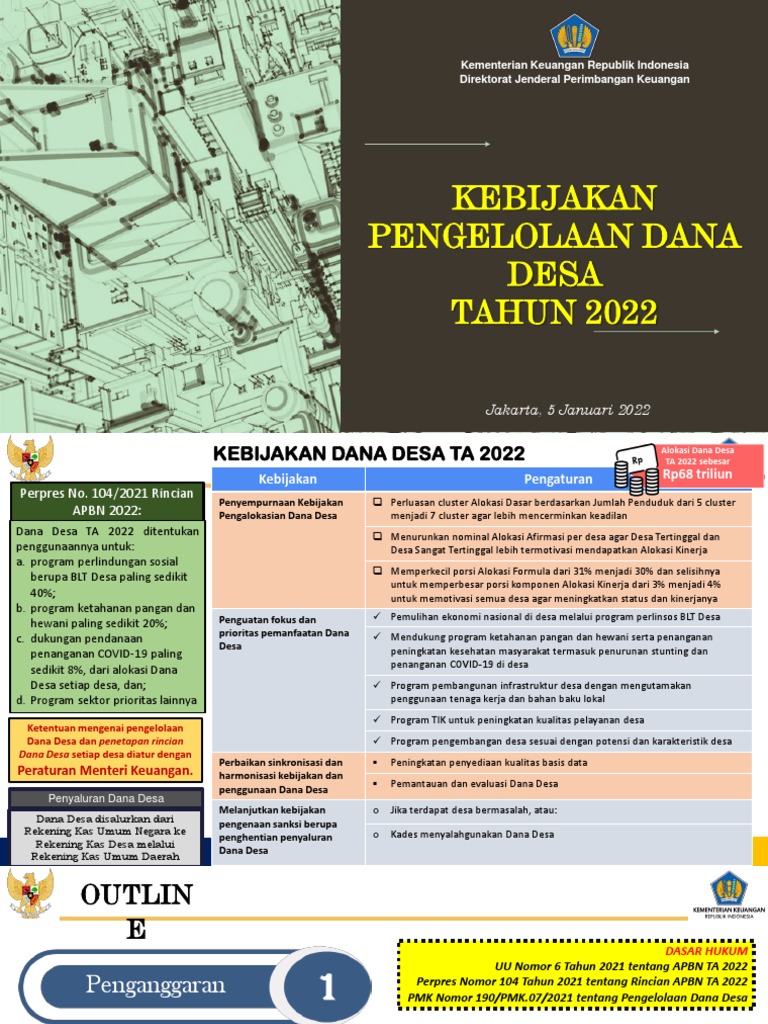 Permenkeu 190/PMK.07/2021 tentang Pengelolaan Dana Desa ... Dasar Hukum. Dasar hukum Permenkeu 190/PMK.07/2021 tentang Pengelolaan Dana Desa adalah: Pasal 17 ayat (3) Undang-Undang Dasar Negara Republik Indonesia Tahun 1945; Undang-Undang Nomor 39 Tahun 2008 tentang Kementerian Negara (Lembaran Negara Republik Indonesia Tahun 2008 Nomor 166, Tambahan Lembaran Negara Republik Indonesia Nomor 4916);