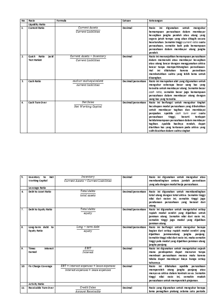 Macam-macam Rumus Rasio Keuangan dan Cara Menghitungnya ... Analisis rasio keuangan tak dapat dilepaskan dari berbagai rumus yang membantu dalam perhitungannya. Sebelumnya, analisis rasio keuangan memiliki beberapa jenis seperti rasio likuiditas, rasio solvabilitas, rasio rentabilitas, dan rasio aktivitas.