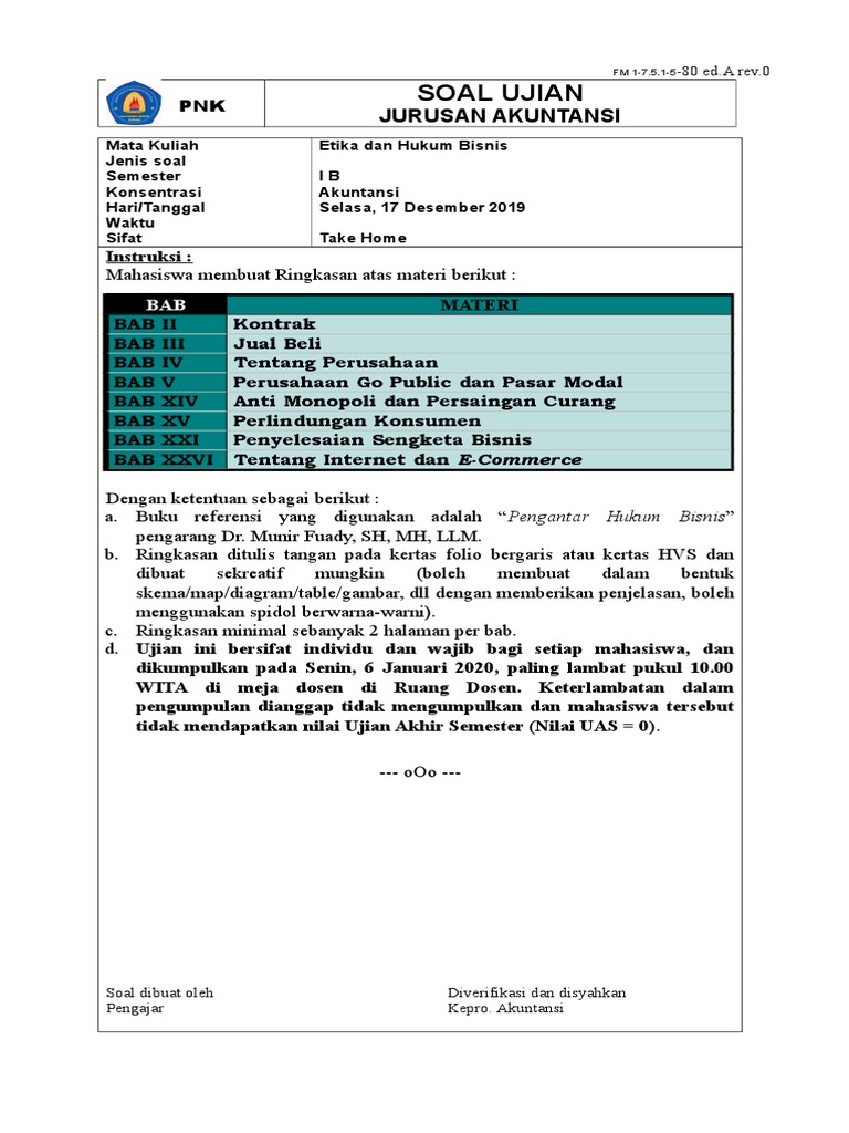 PDF Hukum Bisnis - Uny Fungsi Hukum Bisnis: sebagai sumber informasi yang berguna bagi praktisi bisnis untuk memahami hak dan kewajibannya dalam praktik bisnis agar terwujud watak dan perilaku di bidang bisnis yang berkeadilan, wajar, sehat dan dinamis (yang dijamin oleh kepastian hukum) Sumber Hukum Bisnis; 1. Hukum Tertulis : a. KUHPer (BW; Burjelijk Weboek), 2,3,4 b. Mahasiswa Menulis: Makalah Hukum Bisnis (Perlindungan ... adapun tujuan dari pembuatan makalah ini adalah untuk diketahui bersama bahwa manfaat yang diharapkan dapat menambah khazanah keilmuan terutama ketika seorang konsumen hendak melakukan pembelian atau transaksi bisnis yang semuanya memiliki landasan hukum, yang kemudian dipelajari dalam sebuah mata kuliah yang berjudul hukum bisnis, yang dengan … Hukum Komersial (Hukum Bisnis) - Materi Perkuliahan | M ... Hukum Komersial (Hukum Bisnis) - Materi Perkuliahan Posted by M. HAMIDI MASYKUR on March 26, 2014 Berikut adalah materi perkuliahan Pengantar Hukum Indonesia / Sistem Hukum Indonesia di Fakultas Hukum, Fakultas Ilmu Administrasi di Universitas Brawijaya : KOMERSIAL 1 - SILABI KOMERSIAL 2 - HUKUM KOMERSIAL 3 - ORANG DAN BENDA KOMERSIAL 4 - PERIKATAN