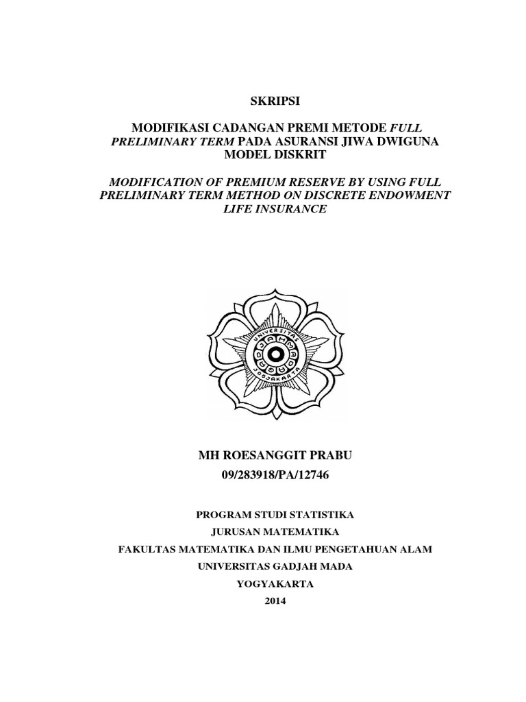 (PDF) Asuransi Jiwa - Kajian Teori - ResearchGate Download full-text PDF Read full-text. Download full-text PDF. ... T ujuan dari kajian ini adala h untuk membuat de skripsi secara. ... Berdasarkan hasil kajian tentang asuransi jiwa, ditemukan ...