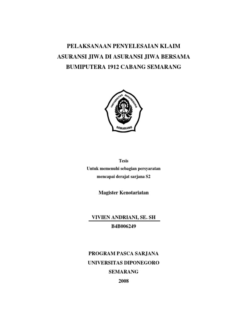 PDF BAB I PENDAHULUAN - Universitas Diponegoro jiwa.Asuransi jiwa merupakan proteksi terhadap kerugian financial akibat ... pengetahuan tentang sistem klaim kecelakaan diri. Selain itu, Tugas akhir ini diharapkan dapat dijadikan pedoman bagi mahasiswa yang menyusun tugas akhir ataupun skripsi dengan judul sistem klaim kecelakaan diri. 2. Manfaat praktis