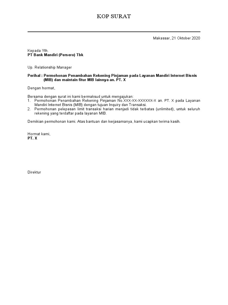 Mandiri Internet Bisnis - Bank Mandiri - Terdepan ... mandiri internet bisnis adalah layanan e-banking untuk melakukan transaksi finansial dan non finansial dengan aplikasi internet banking yang diperuntukkan bagi nasabah bisnis dari segmen perorangan dan perusahaan khususnya kategori perusahaan kecil dan menengah.fitur yang terdapat di dalam layanan mandiri internet bisnis antara lain informasi … Cara dan Syarat Daftar Mandiri Internet Bisnis JAKARTA, KOMPAS.com - Mandiri internet bisnis (MIB) merupakan layanan e-banking untuk melakukan transaksi finansial dan non finansial dengan aplikasi internet banking yang diperuntukkan bagi nasabah bisnis, khususnya bagi kategori perusahaan kecil dan menengah.. Fitur yang terdapat di dalam layanan MIB Mandiri ini antara lain informasi umum rekening, transfer, pembayaran, pembelian ... Cara Cetak Bukti Transfer Mandiri Internet Bisnis (Mib ... About Press Copyright Contact us Creators Advertise Developers Terms Privacy Policy & Safety How YouTube works Test new features Press Copyright Contact us Creators ... Mandiri Internet Bisnis : Cara Baru Menjalankan Bisnis ... Cara Menggunakan Aplikasi Internet Mandiri Bisnis 3. Syarat Mengaktifkan Fitur Layanan MIB 4. Apa Saja Yang Bisa Dilakukan Dengan MIB? Bank Mandiri merupakan bank negara yang paling produktif dalam mengembangkan jaringannya. Ada banyak keunggulan yang bisa kamu nikmati sebagai nasabah produk tabungan bisnis.